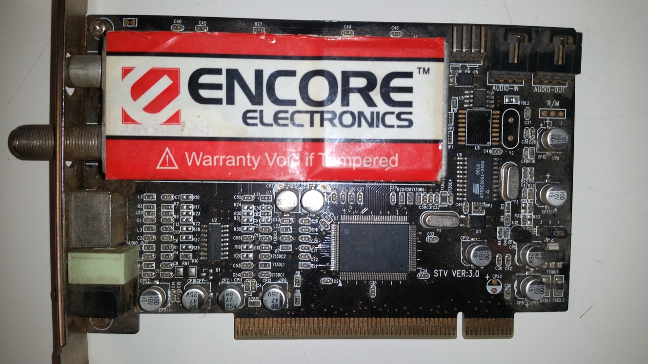 This thing errr PC has a AMD Athlon XP 2000+ cpu at 1.6Ghz, 512mb DDR ram, a 60gb IDE hard drive, and 2 DVD-ROM drives. I put my old Encore ENLTV-FM PCI card in and proceeded to install Windows XP. I had to find all the chipset, audio, network drivers not to mention a working driver link for the TV input card. After about 2 hours of installing, rebooting, and configuring I fired up the Tv card's software with a Commodore 64 attached to the Composite input.